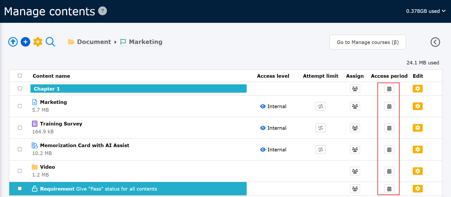Ticking the checkbox will return the study status on the study screen to "Unlearned" after the end of the earliest publication period and before the beginning of the next publication period.