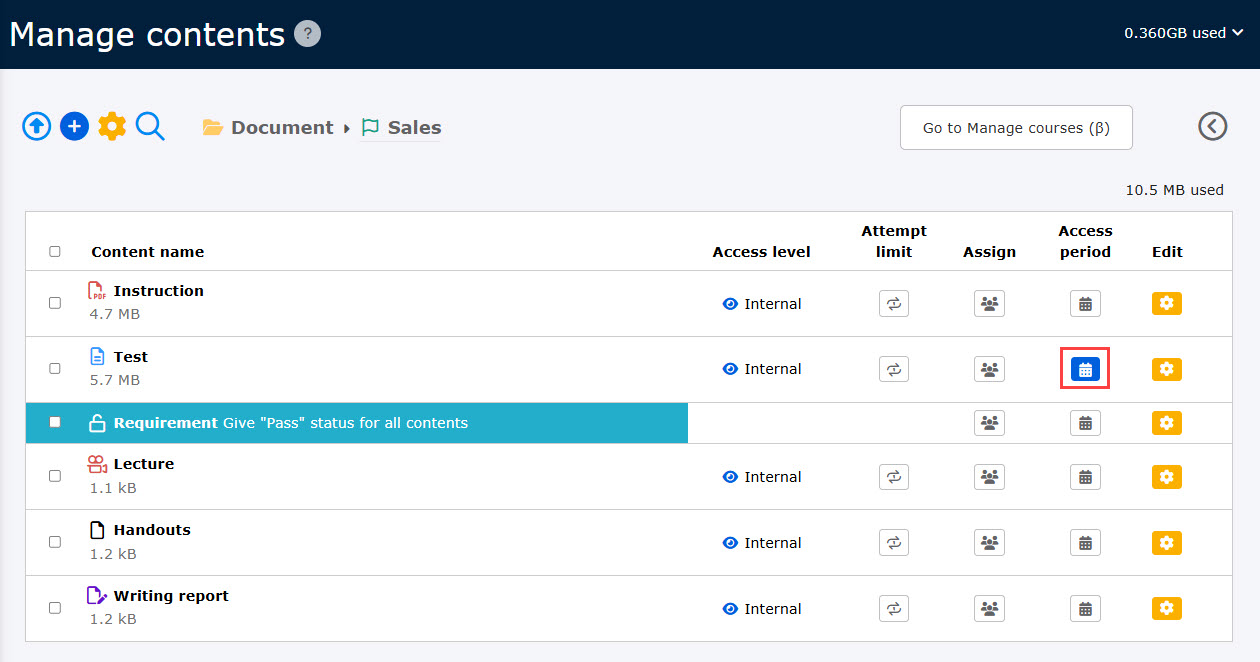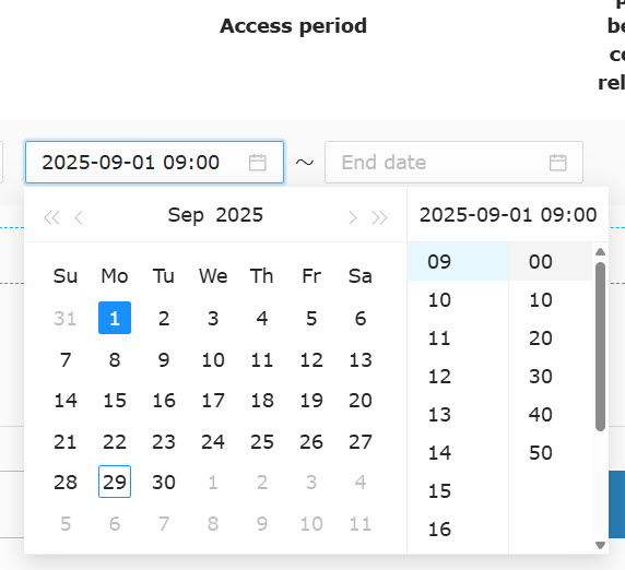 When a large number of Access periods across pages are set, a button will be shown as follows.