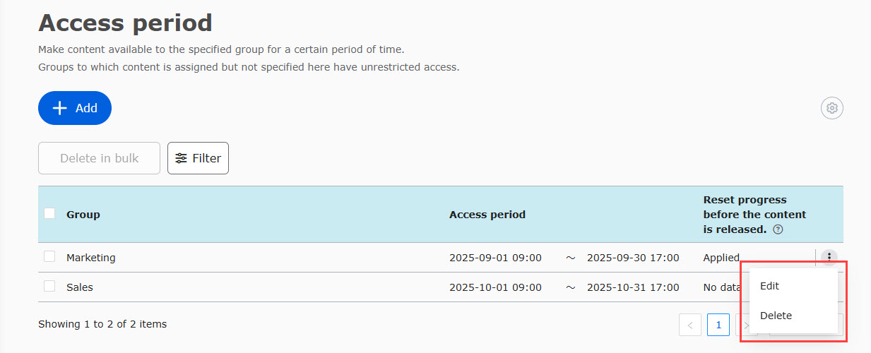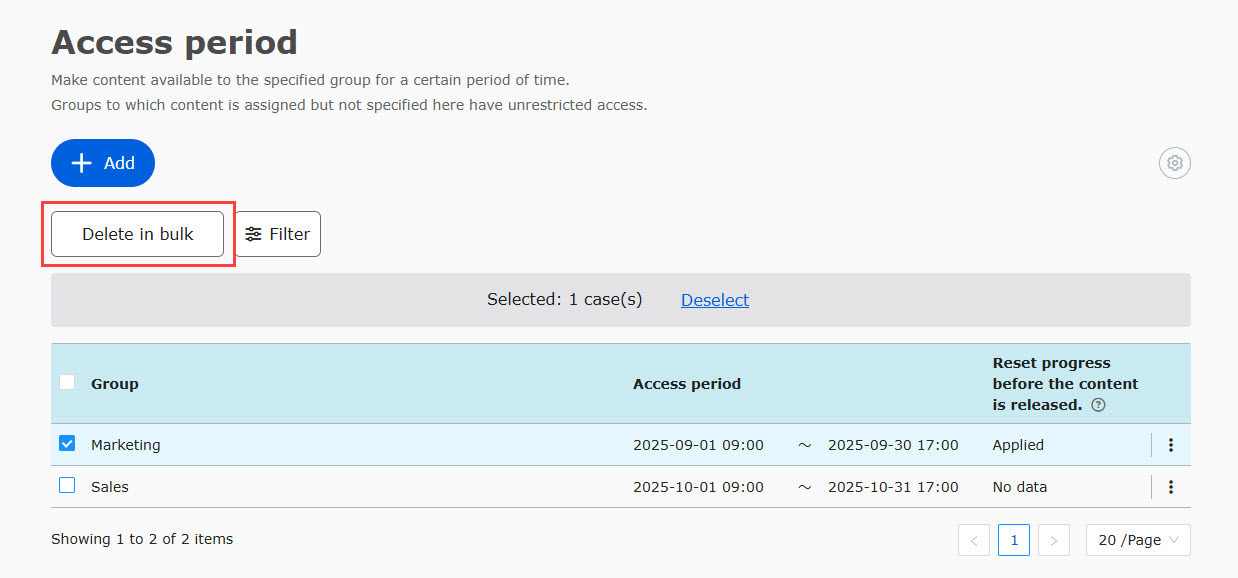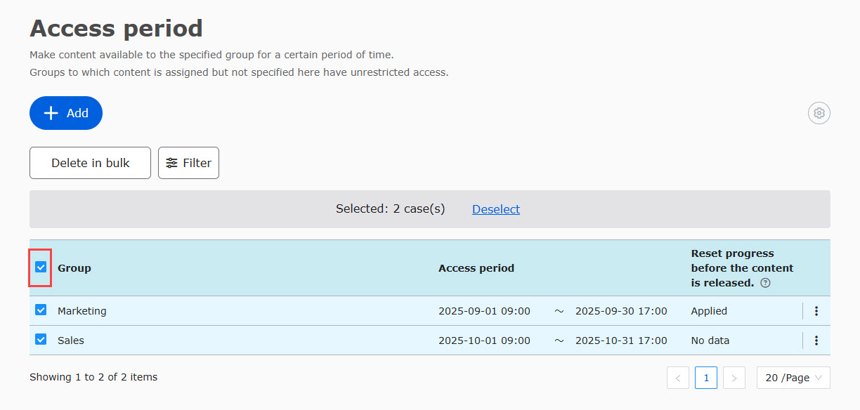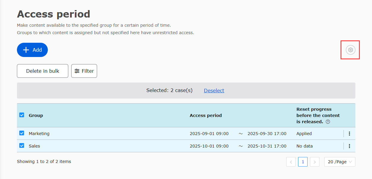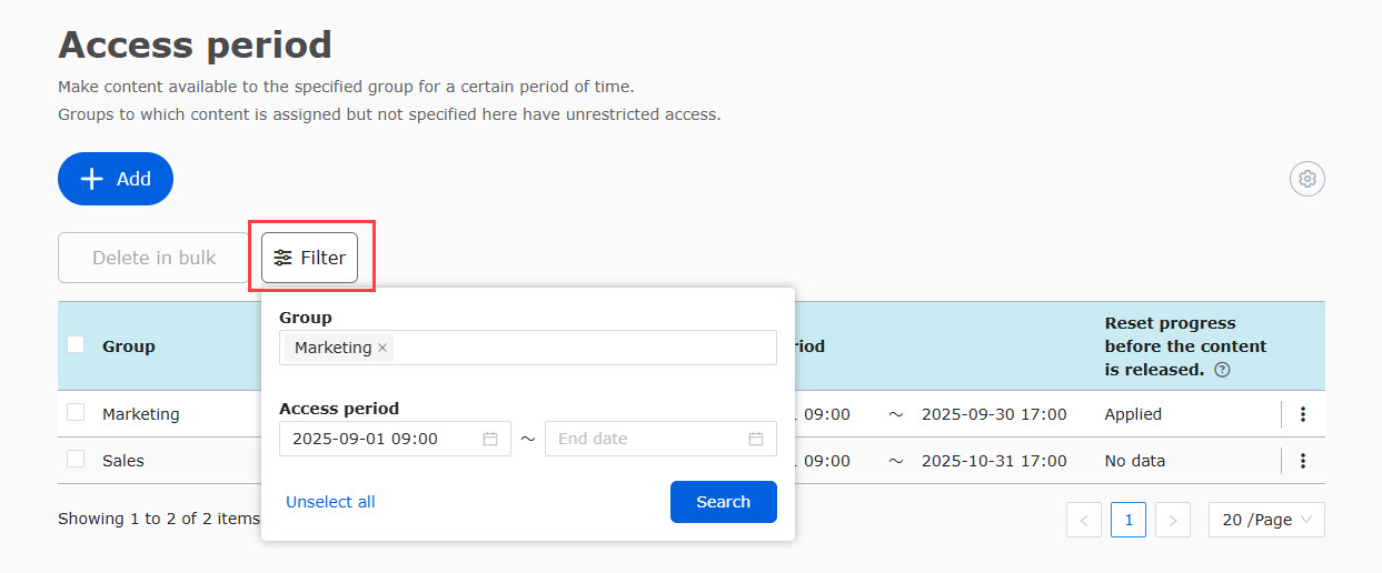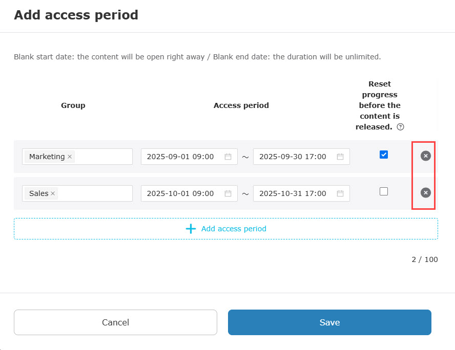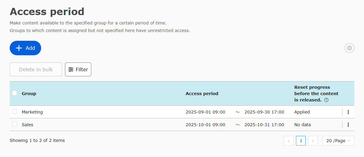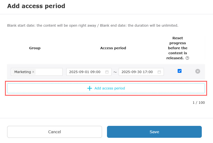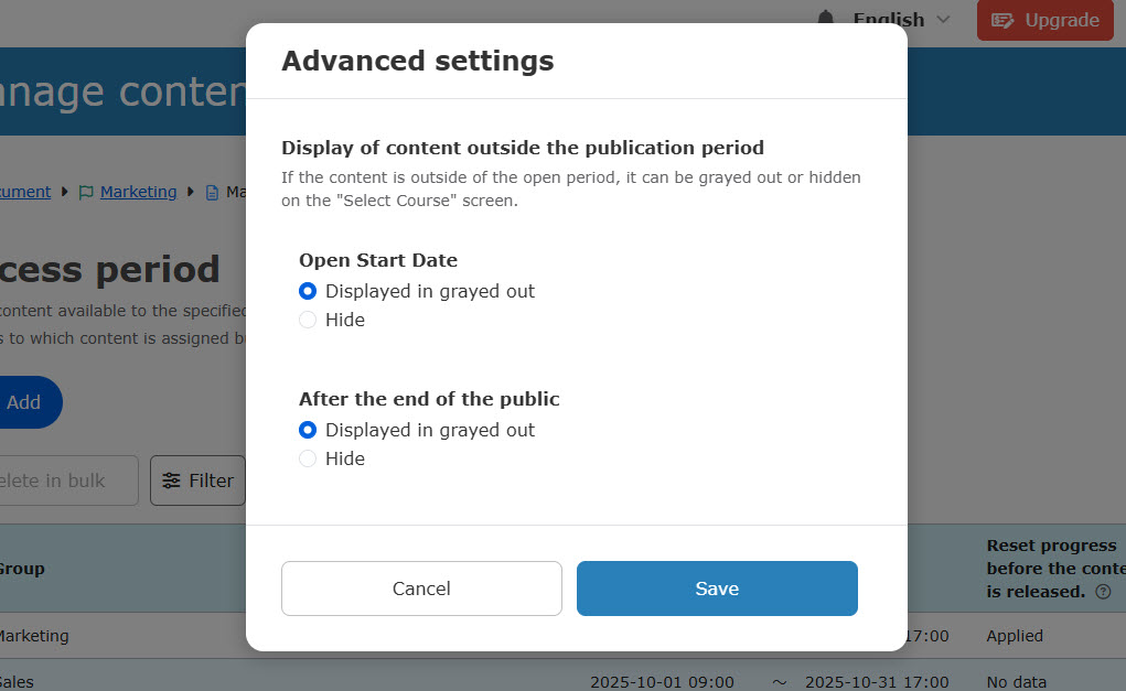 This function is applicable when multiple publication periods are set for the same group for a certain content.