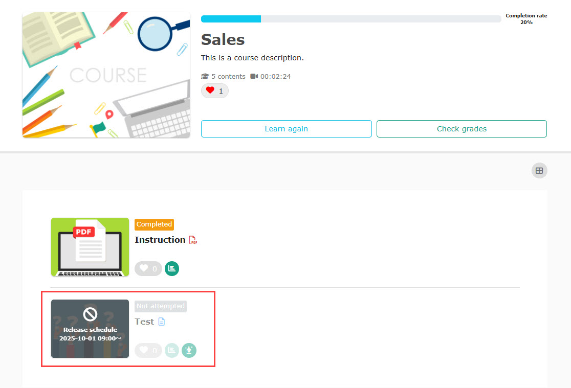 After the end of the open period and before the start of the next open period, the study status on the study screen will be returned to "Unlearned". However, this may not be applied depending on the conditions set.