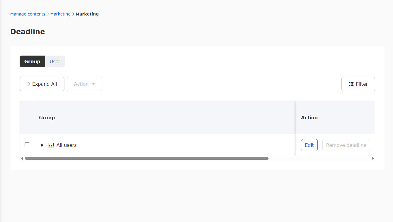 Course deadlines can be set for individual users.
