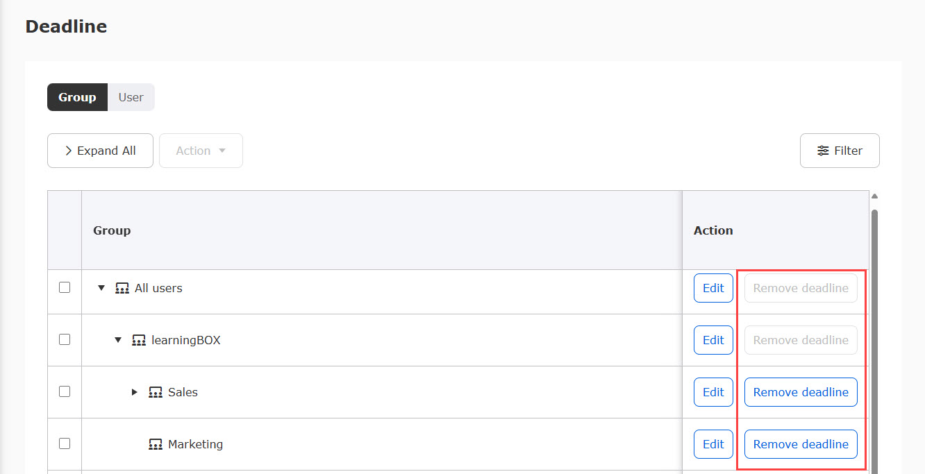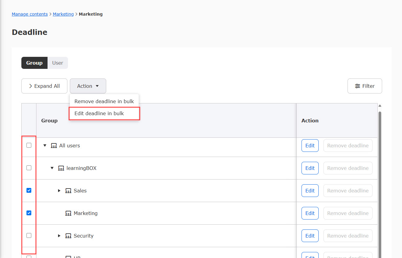 Course deadlines can be set for individual groups.
