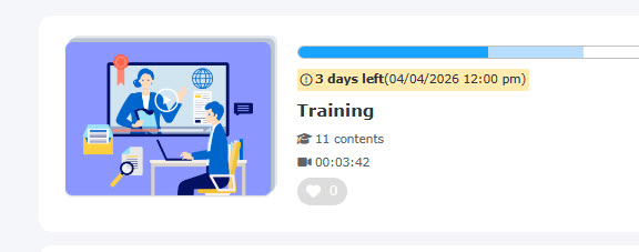 - Recommended course date and time: After the set date and time, the number of days remaining until the due date and time will be displayed in color to encourage attendance.