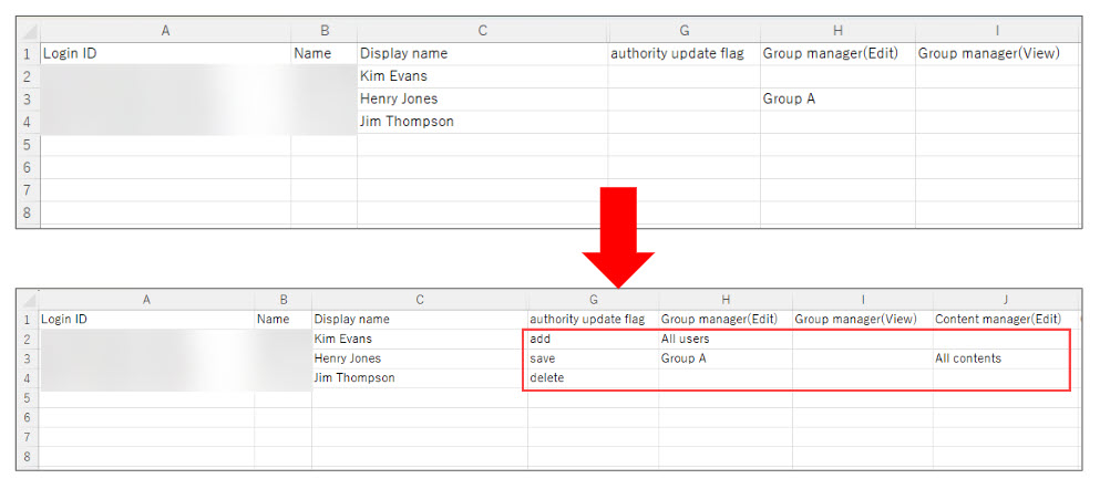 User 003: Group management authority ⇒ Group management authority + Content management authority