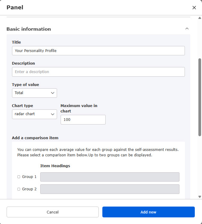 When you select a template to create a personality test, a score chart will be also automatically created.