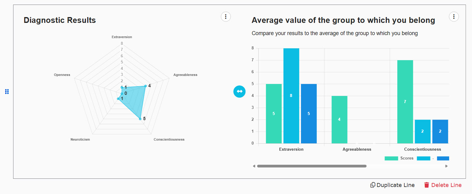 By linking a personality test to the score chart, the results can be visualized in a graph and chart.