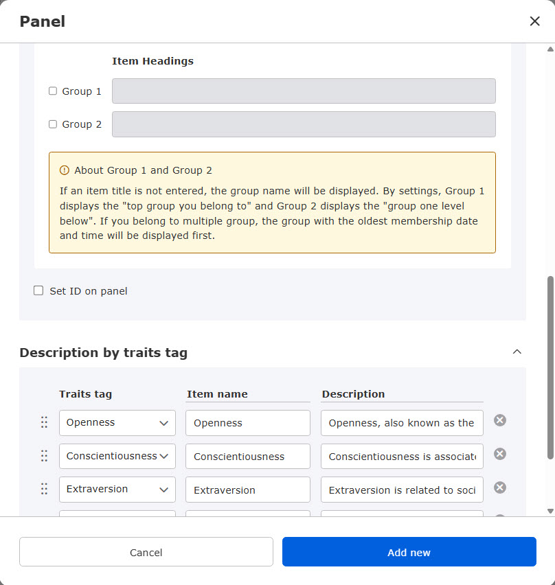 If you tick the "Set ID for panel" box, an ID will be assigned automatically. By using this ID, it will be easier to identify data when acquiring response data through API linkage.