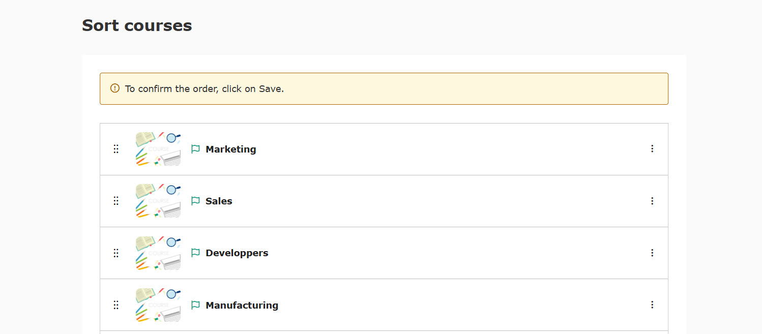To move a course, drag and drop the course with the ⋮⋮ icon.