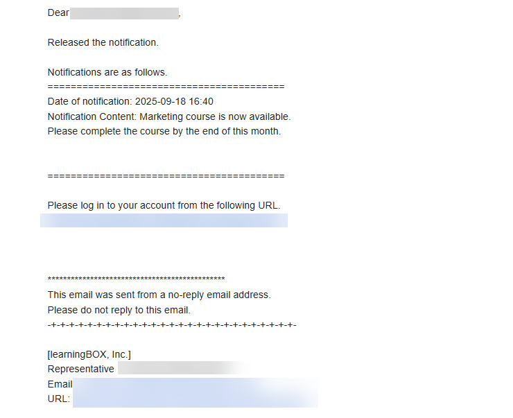 Notifications can be displayed as a notification bar at the top of the learningBOX screen or sent to a registered e-mail address.
