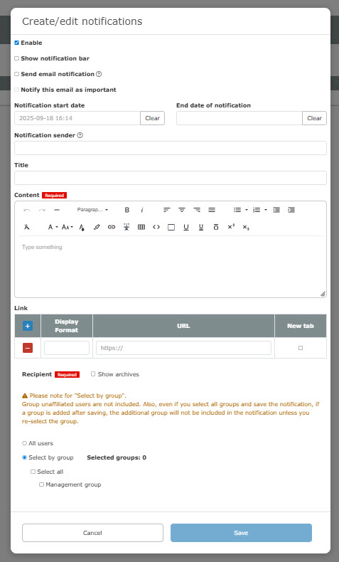 • If you create a group after registering a notice, it will not be sent unless you add it to the destination again