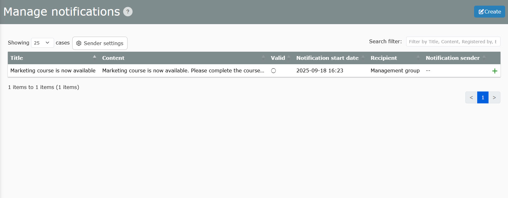 *Select "Notifications" > "Notification Management" from the side menu to open the page.