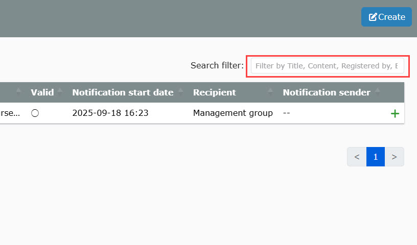 You can search for notices using the search filter in the upper right corner of the "Manage Notices" screen.