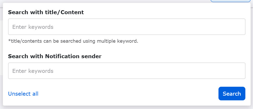 You can narrow down the notices to be displayed by specifying conditions from the "Refine" menu.