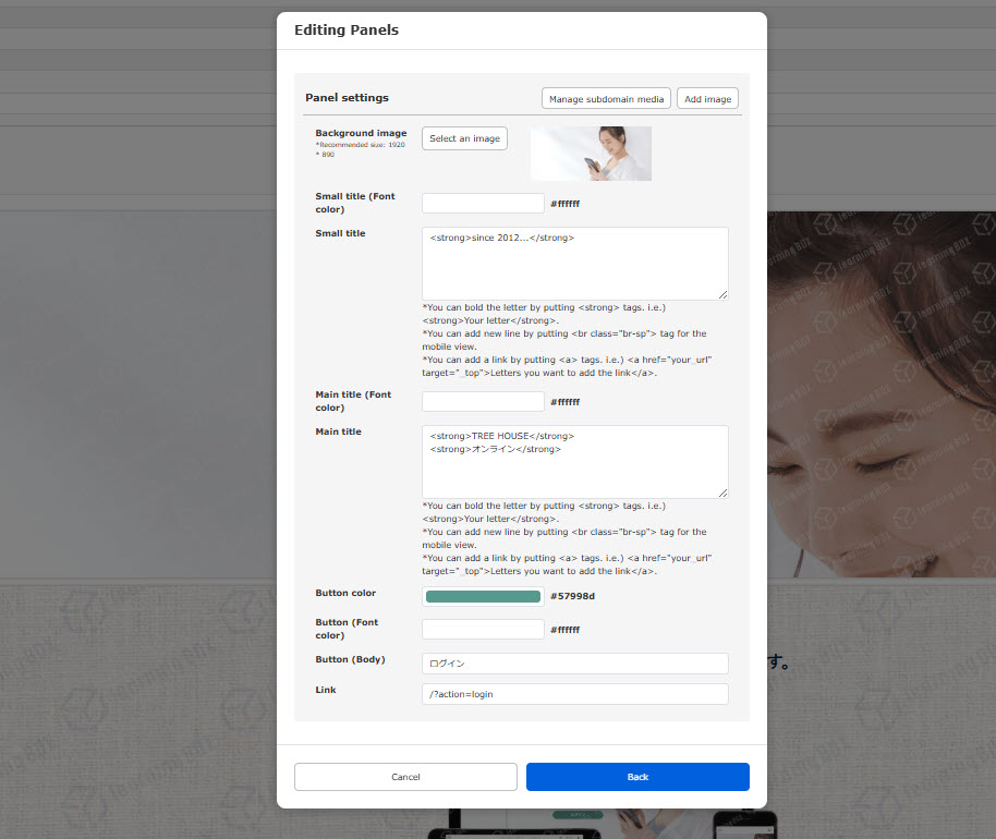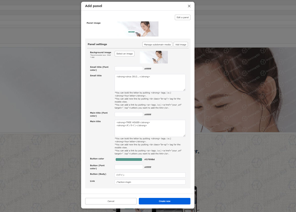 There are two ways to edit the content: create a panel from scratch or load a template. Each is explained in detail below.