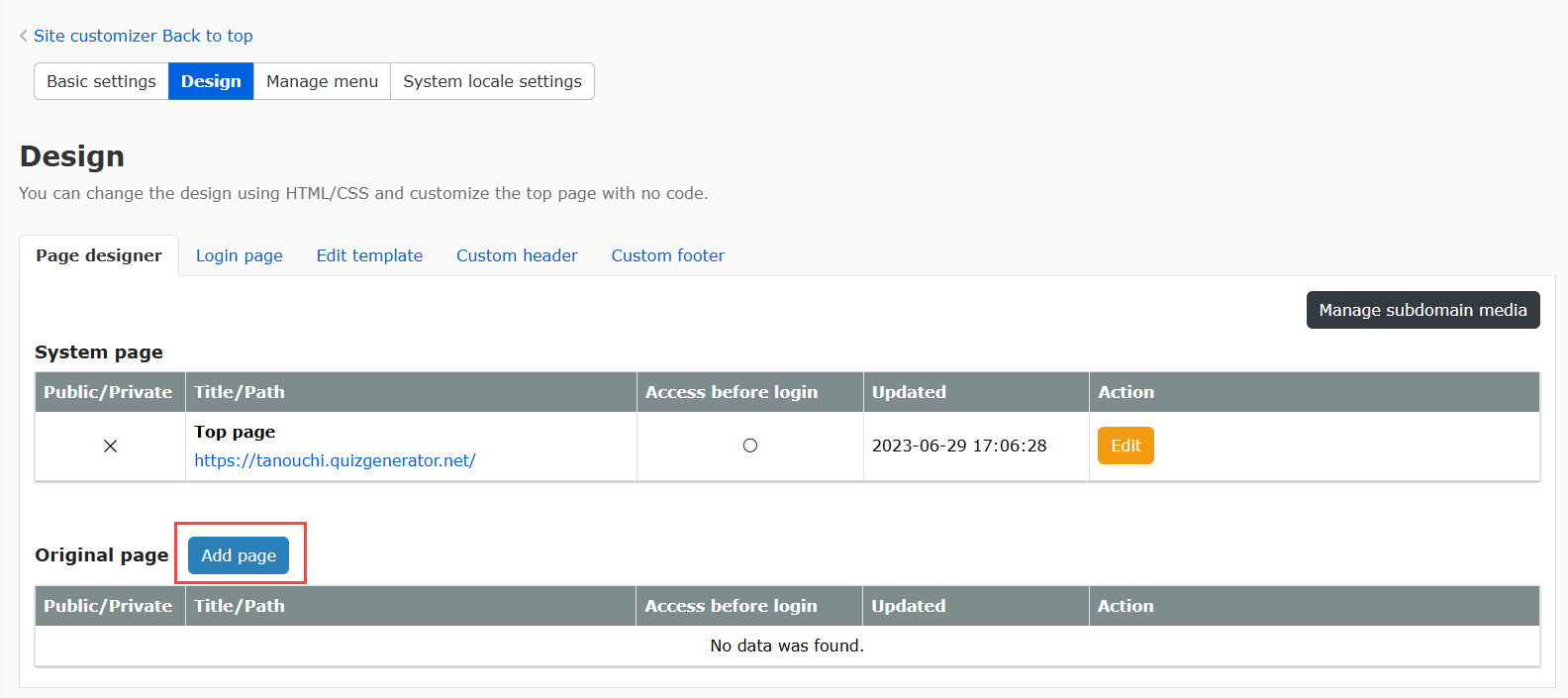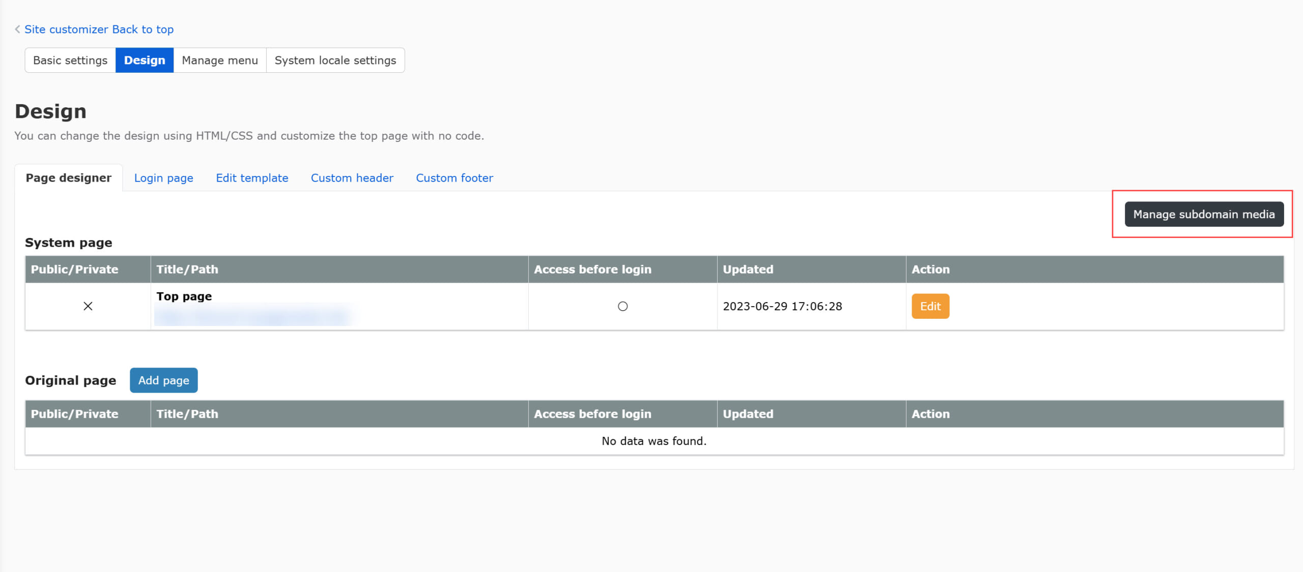 You can customize the login page. "System page" allows design change with templates, and "Original page" allows you to customize pages on your own.