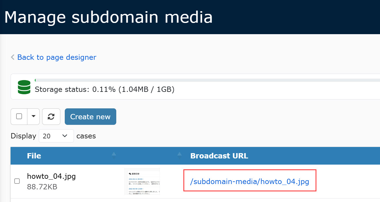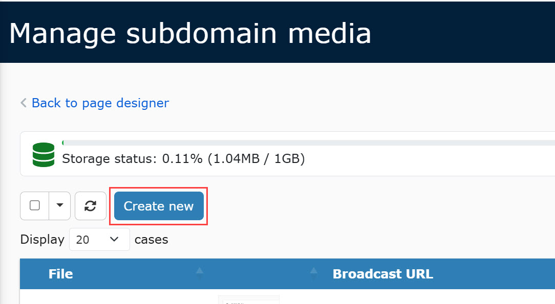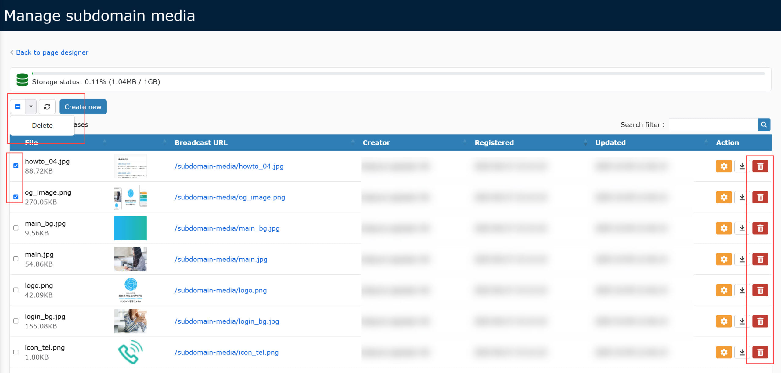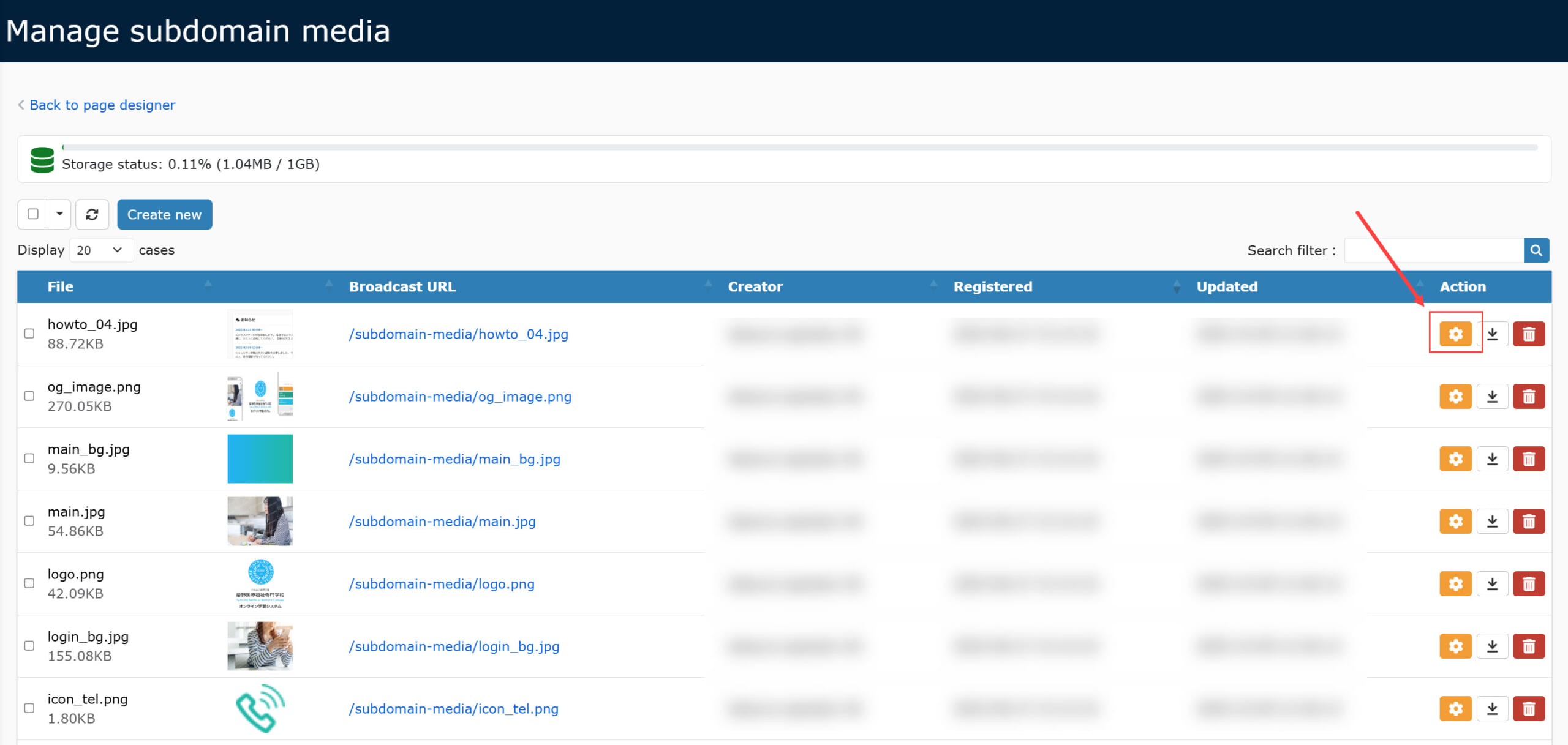 Images used in the Page designer can be managed in the Manage subdomain media.