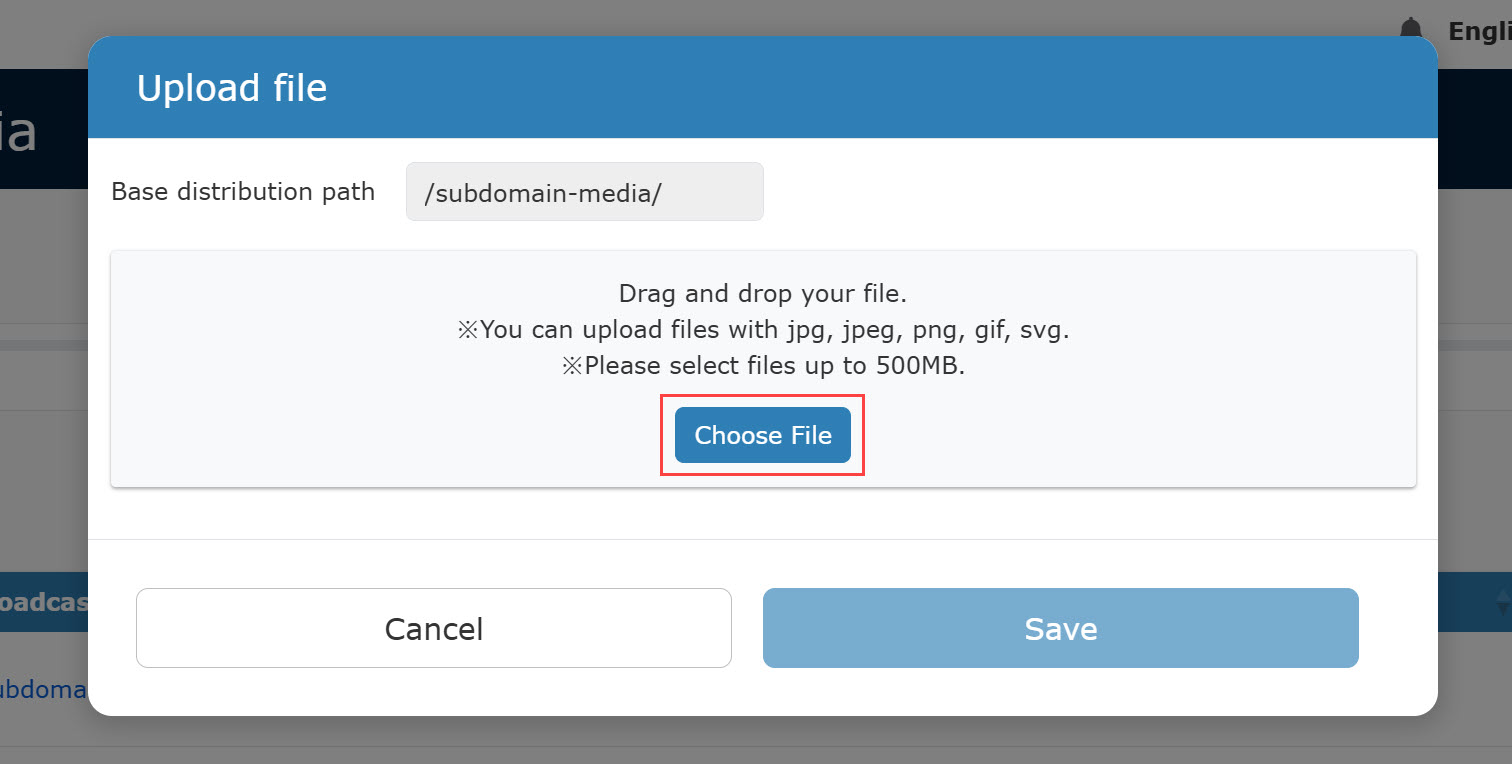 To add a new image file, click on "Add image," and upload a file from "Choose File."