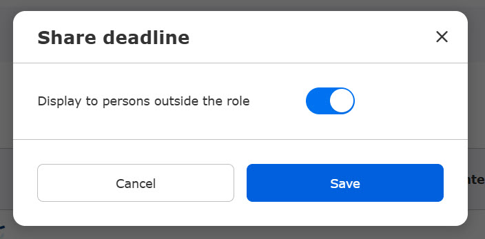 Turn on the toggle key to show the deadlines to Content managers who do not have the management roles to the content.