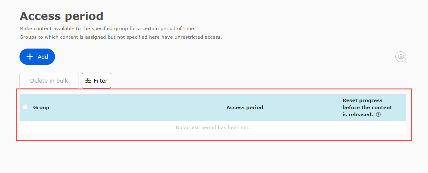 Another Content manager assigned to the Sales group is trying to set a new Access period.