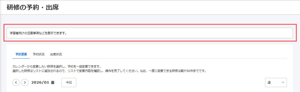 A reminder to learners can be displayed at the top of the "Training Reservations and Attendance" screen.