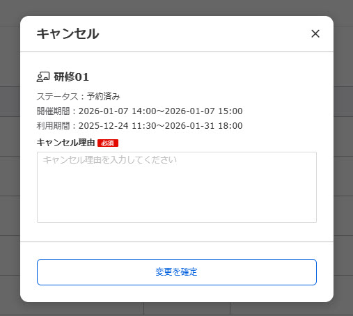 You can cancel a training reservation by clicking "Cancel" to the right of the displayed item for each training course on the reservation status list screen.