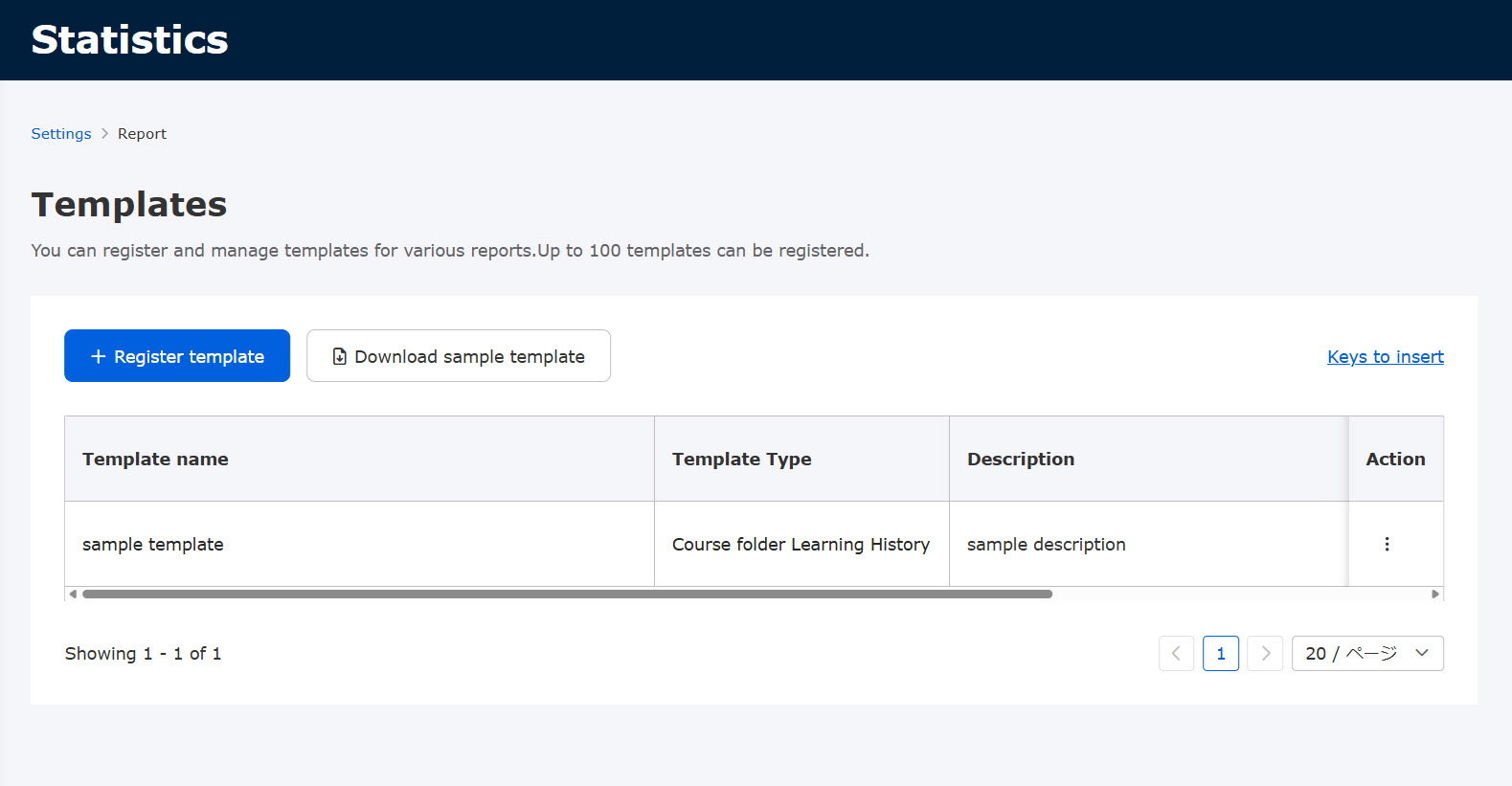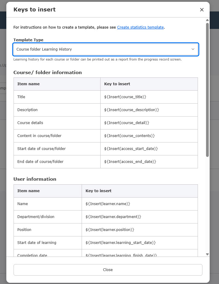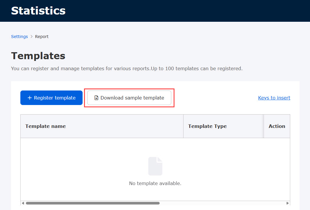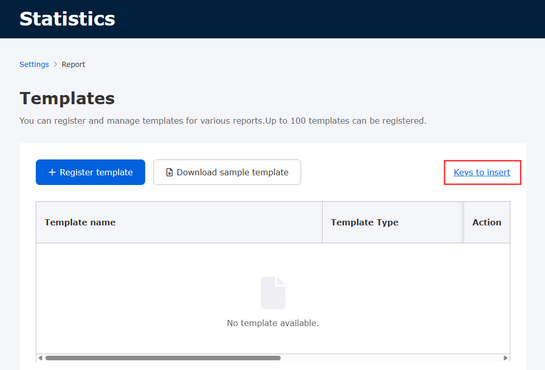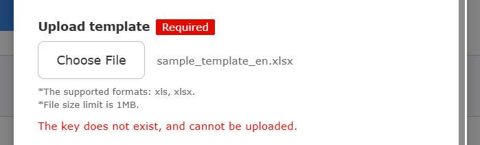 If an insert key that does not exist for the selected template type is used in the template file, an error message is displayed and the file cannot be uploaded.