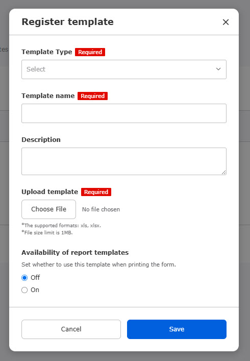 Also, select whether or not to use the template in the "Availability of Form Templates" section.