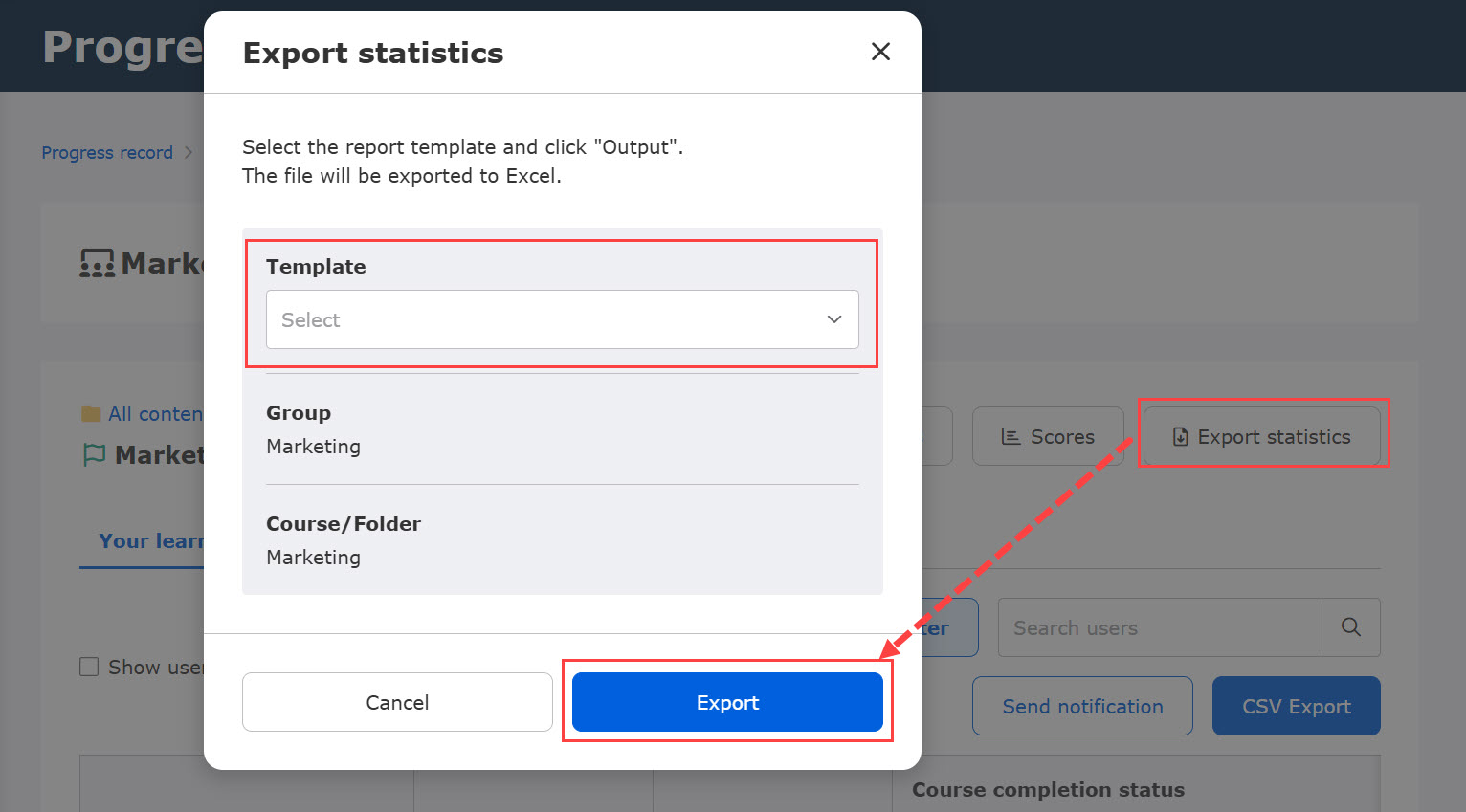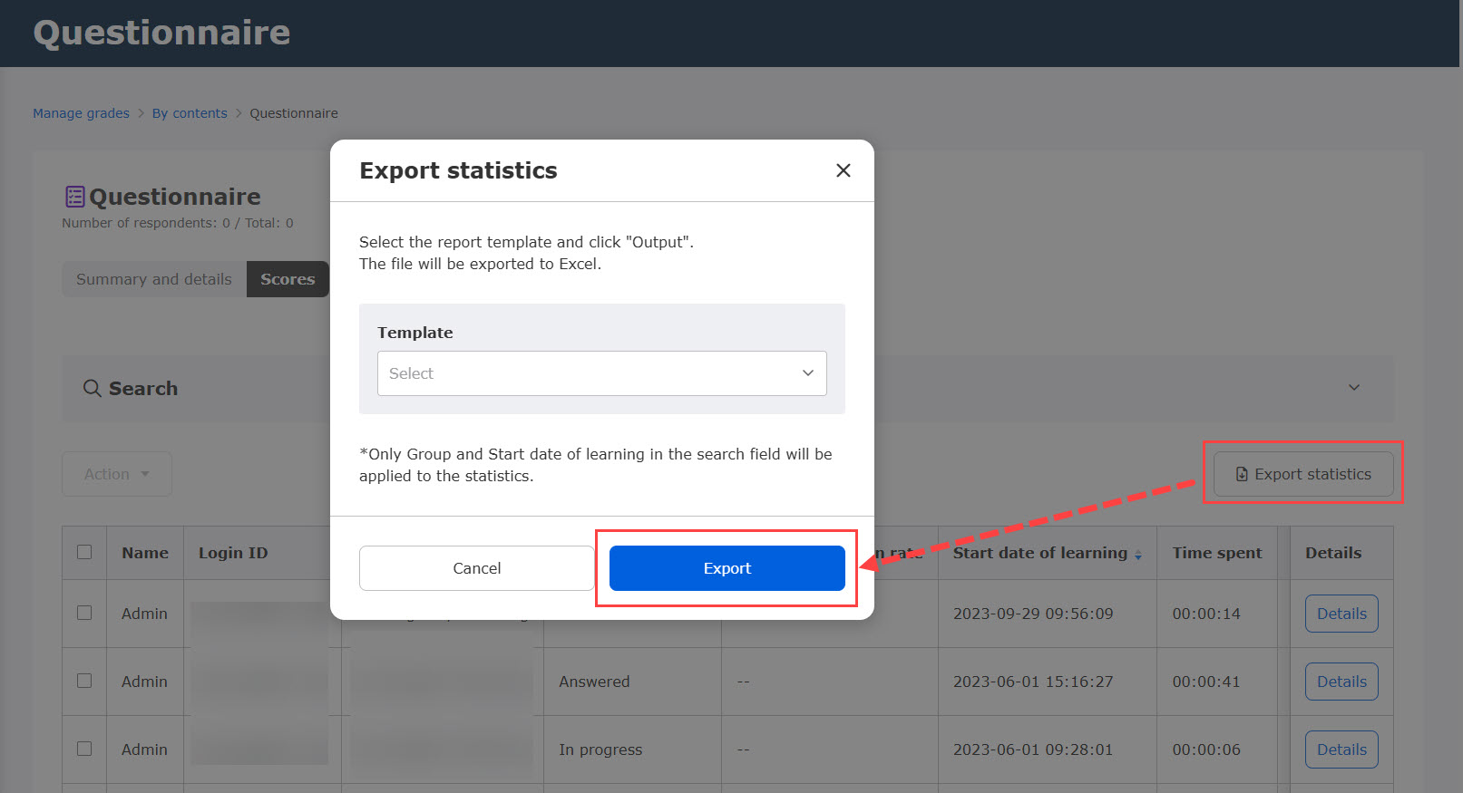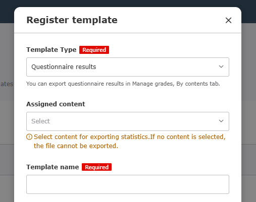 - Survey results: Export the survey results as a report from the "By Content" screen of the grade management.