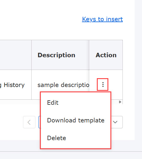 Click the "︙" icon in the "Operation" column of each template to display the following menu.