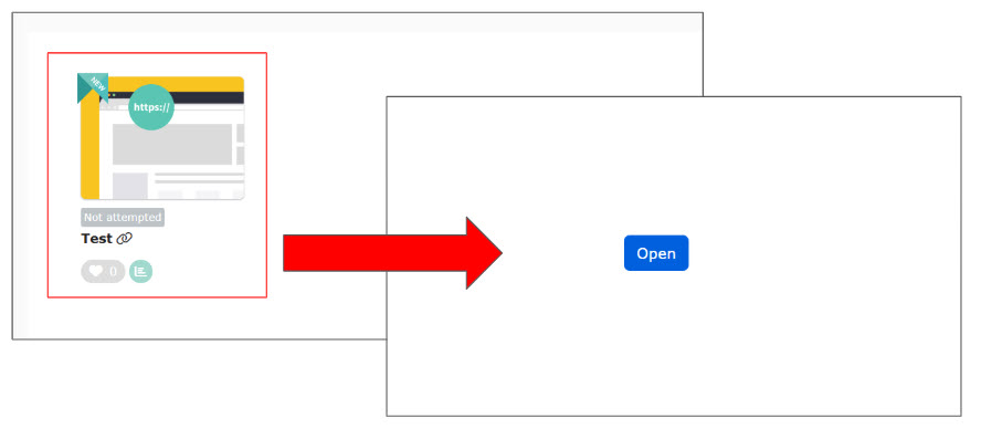 Clicking "Open" opens the Start Test window in a separate tab.