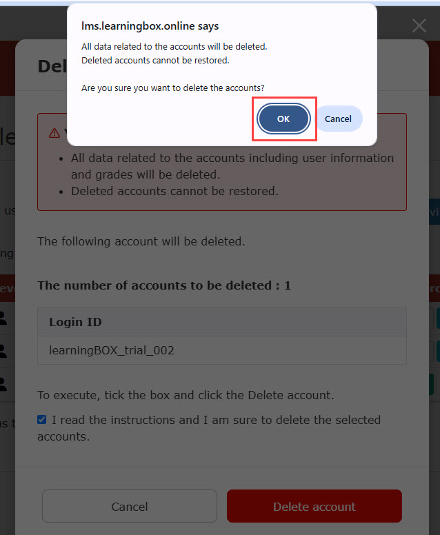 ・Deleted accounts cannot be restored.