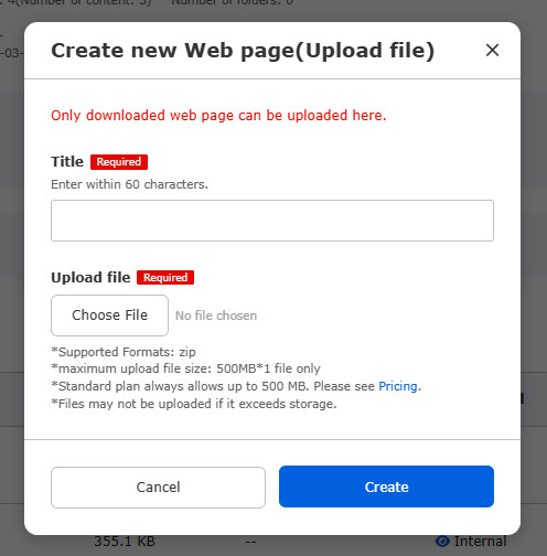 Downloaded web page can be uploaded.