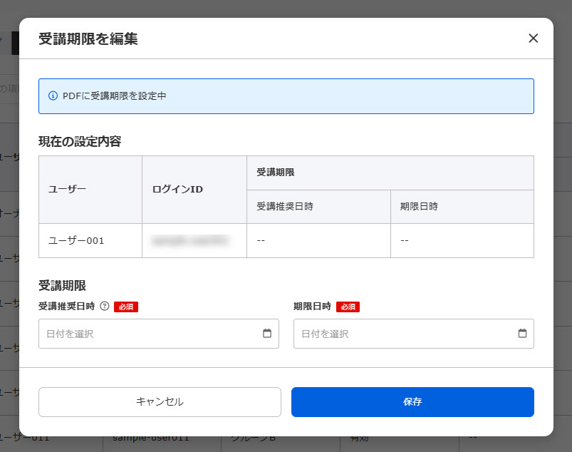 個別のユーザーに対して、受講期限を設定できます。