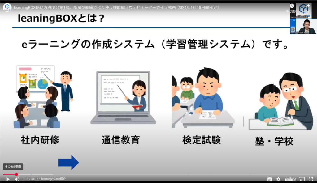 YouTubeやVimeoのライブ動画も、learningBOX内で視聴可能です。