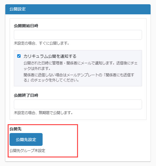 「カリキュラムを探す」画面に公開する期間を設定できます。