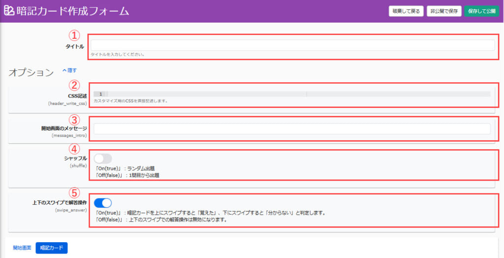 ②CSS記述:CSSを記述することで、暗記カードをカスタマイズできます
