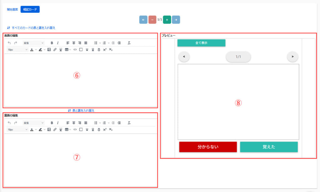- 表と裏を入れ替え:現在編集中のカードが対象