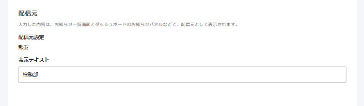 また、「配信元設定」で配信元の項目を選択している場合は、「表示テキスト」の箇所に操作者の値が表示されます。