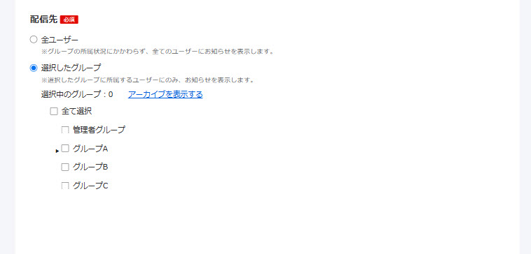 配信先で✔を入れたグループをアーカイブしても、当該お知らせは通知されます。