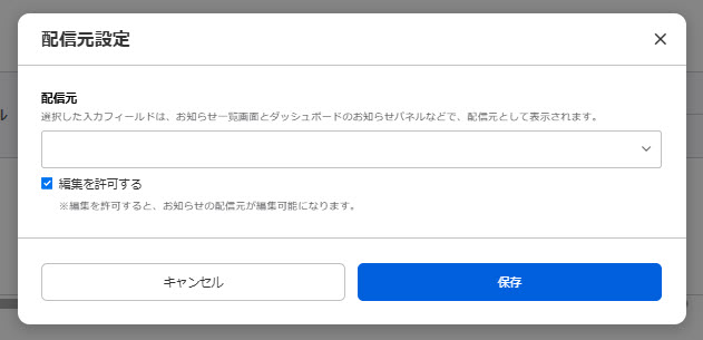 また、お知らせ作成/編集者に対して、配信元の値の編集を許可するかどうかを設定できます。