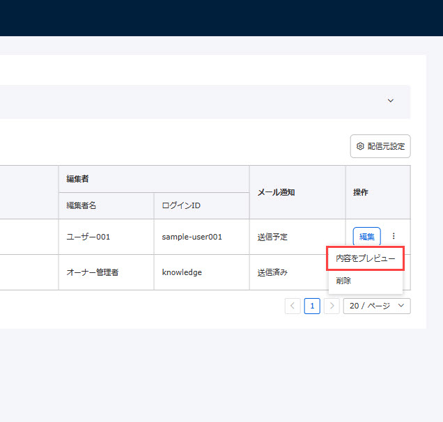 「配信元設定」の箇所に、「配信元設定」で選択した項目が表示されます。