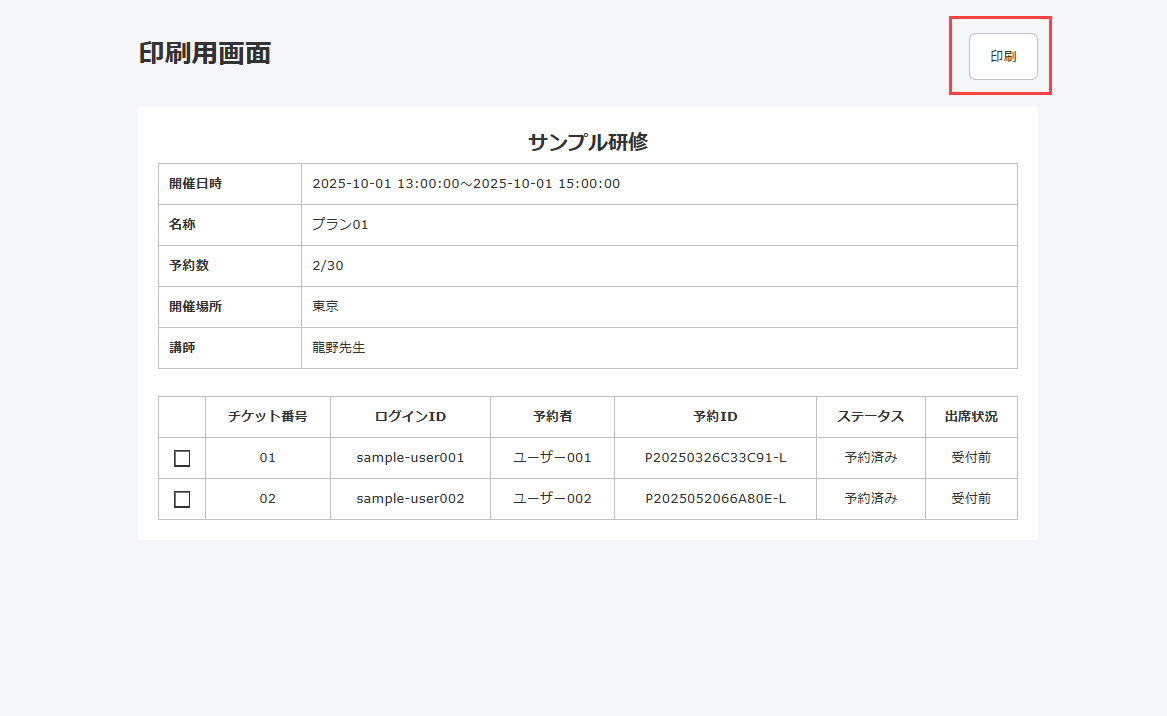 開いた画面で、「印刷」ボタンから内容を印刷できます。